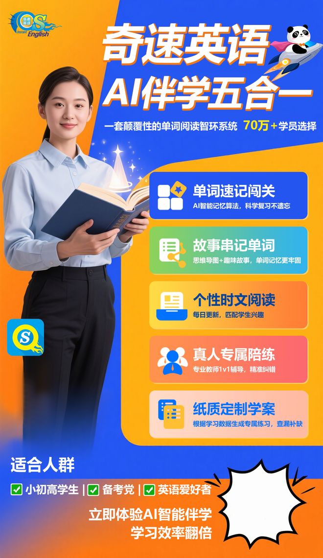 从基础到拔高,奇速英语AI伴学以组合的方式,为学习者提供了全方位、个性化的学习支持,精准突破英语学习瓶颈,让英语学习之路更加顺畅。